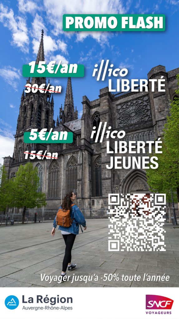 Jusqu’au 3 décembre, la carte Illico Liberté est vendue 15€ au lieu de 30€ et la carte Illico Liberté Jeunes est vendue 5€ au lieu de 15€. Sa durée de validité est d’un an. Les cartes sont en vente sur le site https://www.ter.sncf.com/auvergne-rhone-alpes/tarifs-cartes/cartes-reduction ou au guichet des gares de la région Auvergne Rhône Alpes (comme Vallon-en-Sully).